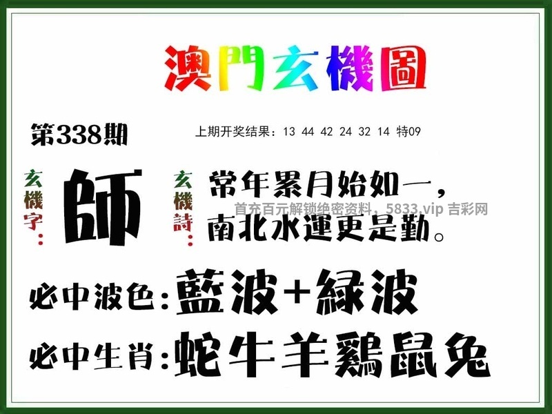 | 338期五肖 | 鸡马兔牛狗 | 开:狗08中 |