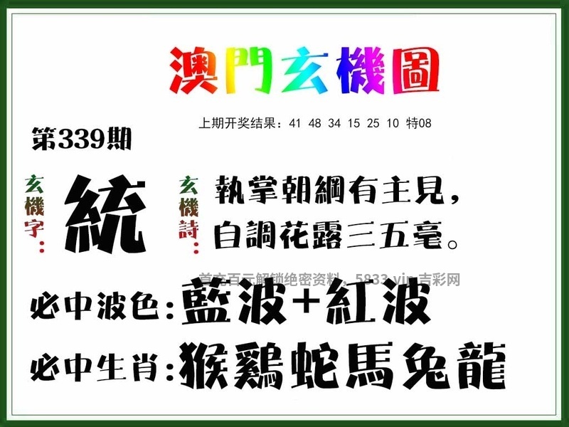 | 339期七肖 | 猪猴蛇羊虎马兔 | 开:马48中 |